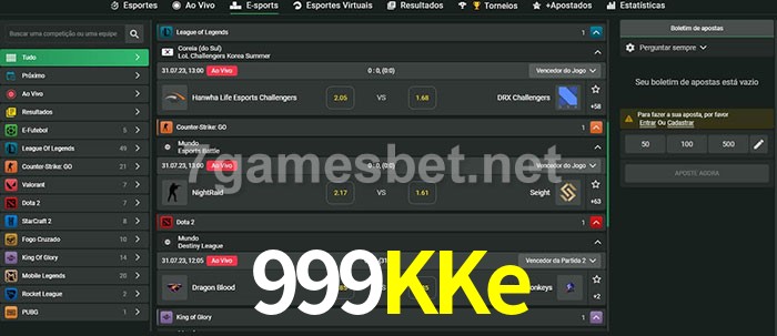 O 999KKe oferece uma grande seleção de opções de apostas em e-sports com probabilidades competitivas